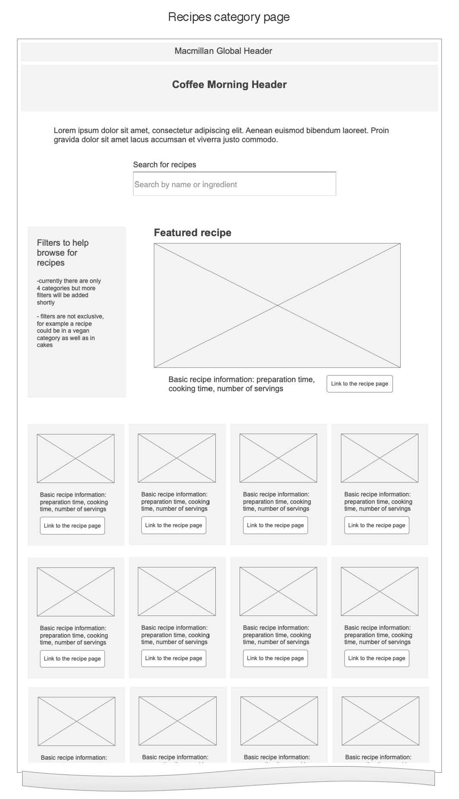 On the grid page, it was clear that the search and filter options - by name, ingredient or other criteria - would be vital for helping participants quickly find the perfect recipe.